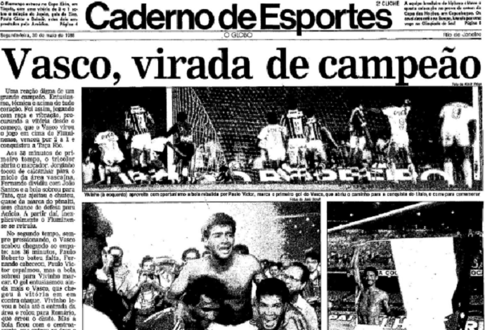 O jogo em questão aconteceu em 29 de maio de 1988. O Vasco perdia para o Fluminense até os 35 minutos do segundo tempo, quando Vivinho e Bismarck garantiram a vitória e o título da Taça Rio - em seguida, o Cruz-Maltino conquistaria o Campeonato Carioca em cima do Flamengo.