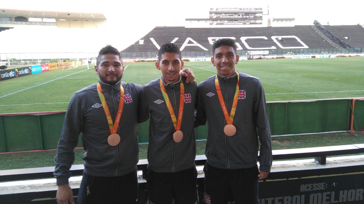 Vasco da Gama @vascodagama Os medalhistas de bronze, Jean Diniz, Diego Delgado e Felipe Rafael, irão prestigiar o Vasco nesta noite. #FutebolDe7