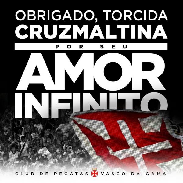 Em rede social, Vasco agradece torcida pelo 'amor infinito'