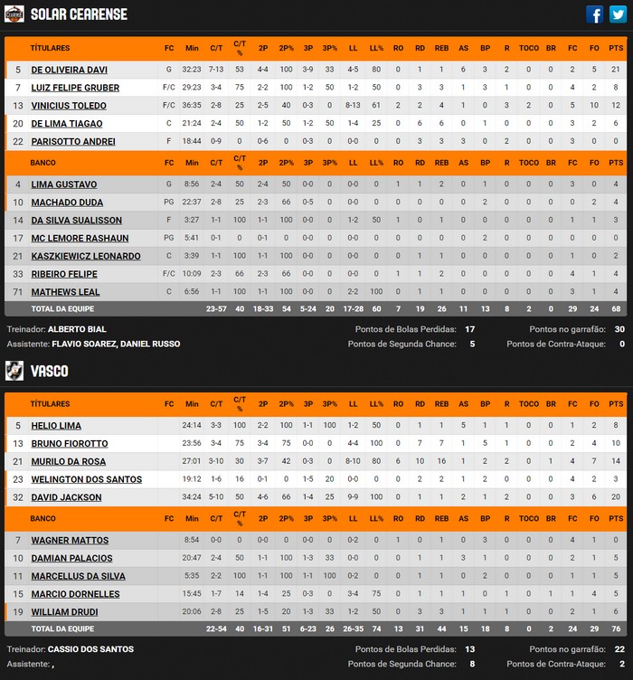 Fonte: Site oficial do Vasco (texto, fotos), Twitter oficial do Vasco (fotos), LNB (estatísticas)