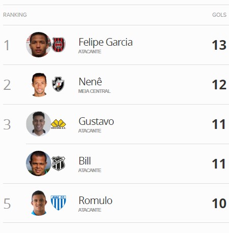 Nenê tem 12 gols marcados e está na vice-liderança da artilharia. Felipe Garcia, do Brasil de Pelotas, é o artilheiro com 13 gols.