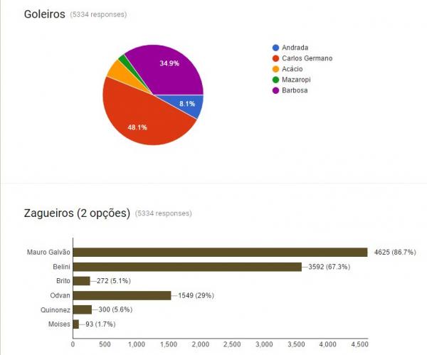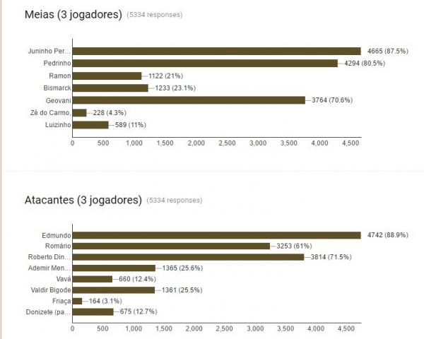Goleiro foi a disputa mais equilibrada e o escolhido pela maioria foi Carlos Germano. No comando da zaga Bellini e Mauro Galvão. Fraca né?!