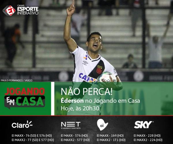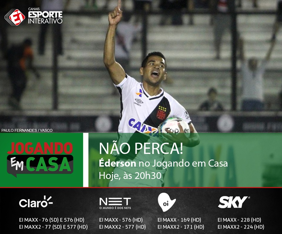 Alô, torcida do Vasco da Gama! Hoje o Éderson vai ser o convidado do Jogando em Casa e vai falar muito sobre o momento e a situação do clube! Não vai perder, né? É às 20h30, nos canais Esporte Interativo!