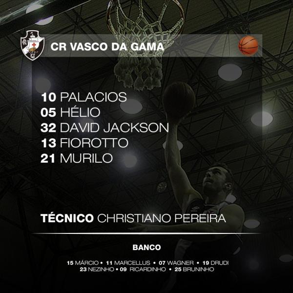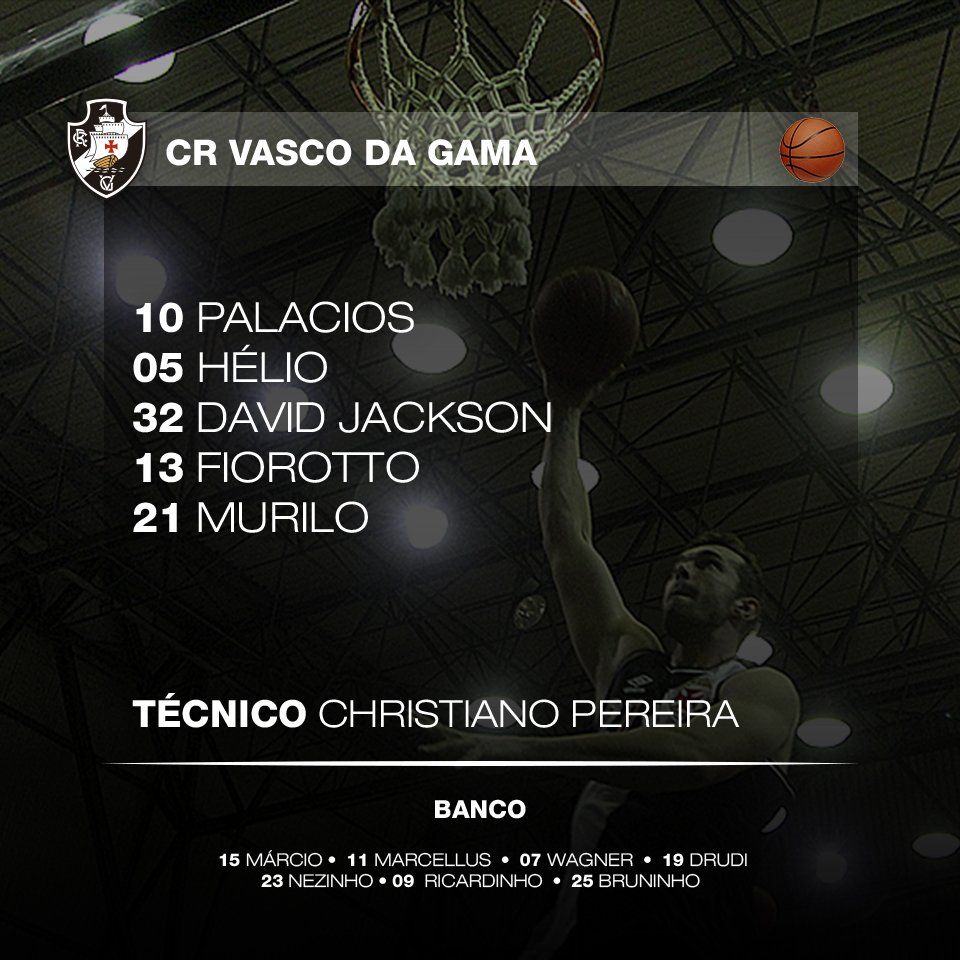 Vasco da Gama @vascodagama Escalação oficial do Vasco para a partida contra o Flamengo. #GiganteDoBasquete