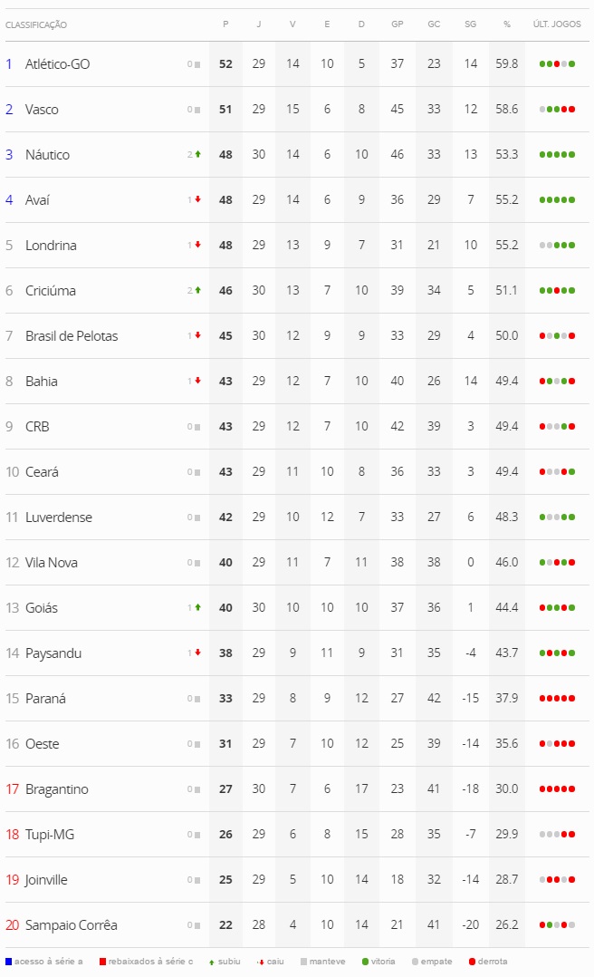 Os resultados desta 6ª-feira da Série B deixaram o Vasco somente 3 pontos à frente do 5º colocado, que, neste momento, é o Londrina, adversário do Gigante da Colina neste sábado em Manaus.