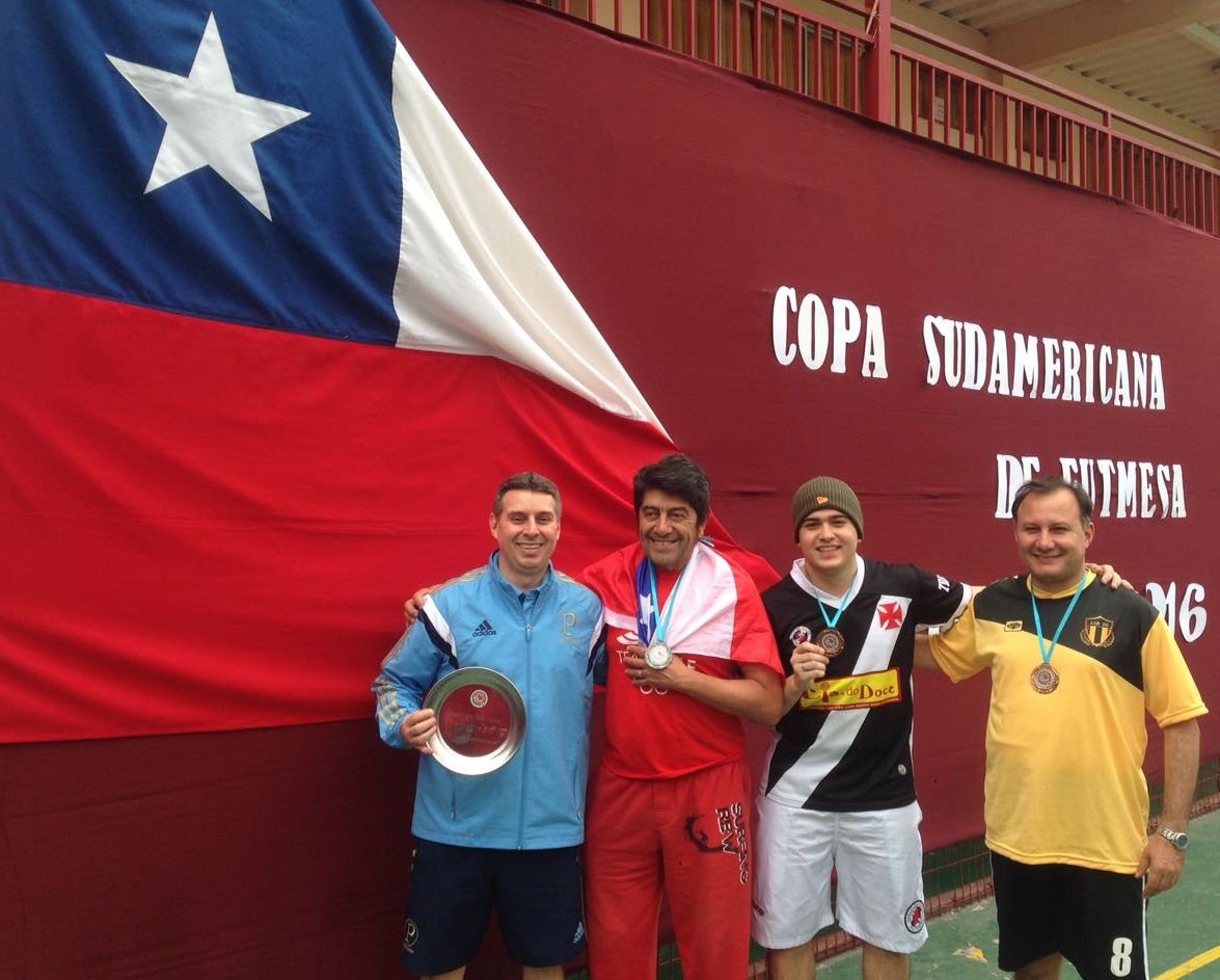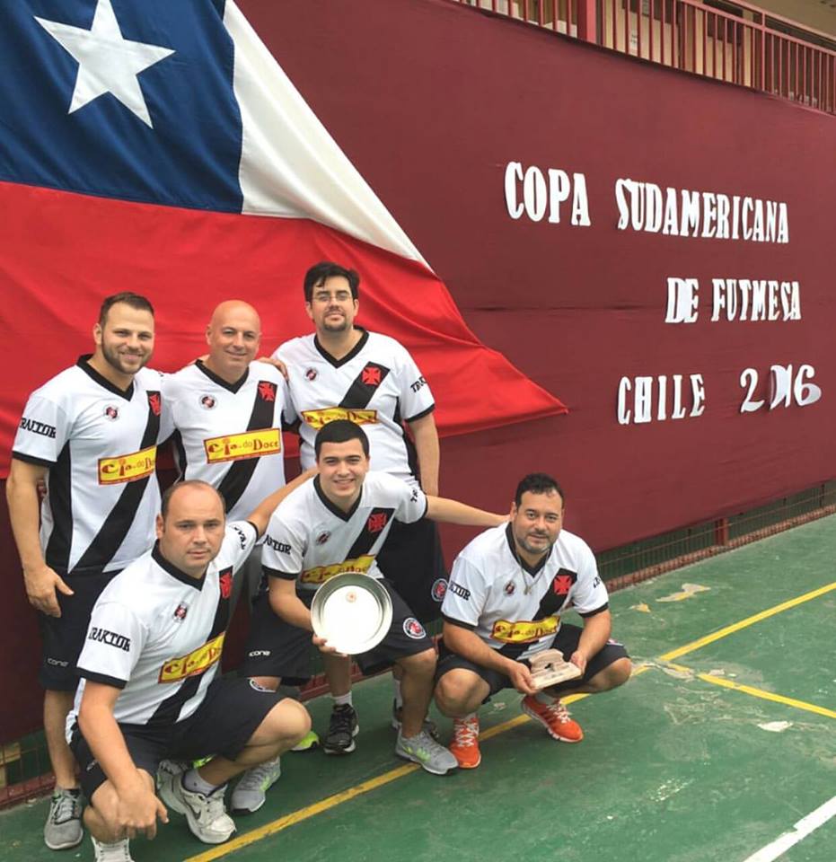 Vasco vence Palmeiras e é campeão sulamericano de futmesa, regra 12 toques, pela terceira vez, atuando no Chile. 2012/2013/2016. — com Igor Monteiro, Marcelo Lages Ramalhete e Renato Kort em Antofagasta.
