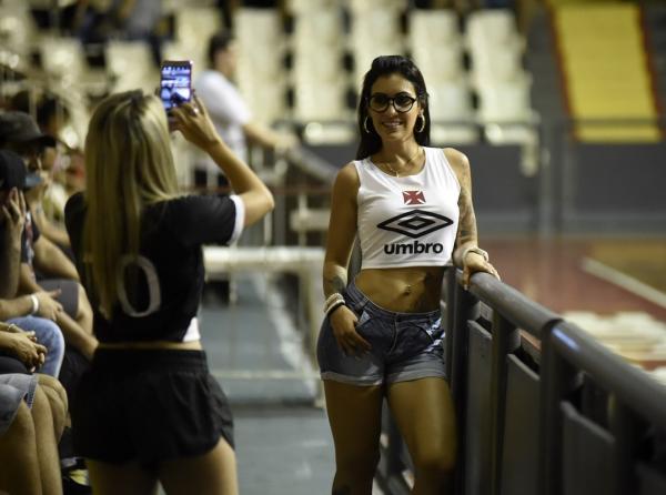 Torcida do Vasco vai ao delírio com o hino que ecoa no ginásio do Tijuca. Realmente, é uma festa para os torcedores do time da Colina, que cantam e estouram balões brancos para fazer barulho.