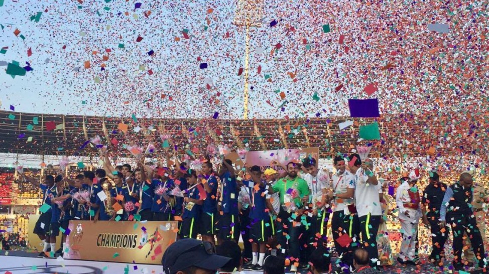 Com direito a goleada na decisão, a Seleção Brasileira Sub-17 conquistou neste sábado o título da BRICS Cup 2016, competição disputada na Índia entre os países do bloco - África do Sul, China e Rússia, além do Brasil e dos donos da casa. Na final, o time de Carlos Amadeu derrotou os sul-africanos por 5 a 1.