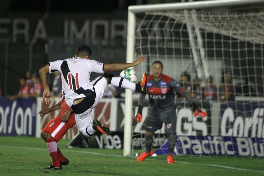 O CRB respondeu no minuto seguinte. Zé Carlos recebeu livre na esquerda, entrou na área e tentou chute pelo alto, mas errou o gol. O panorama da partida seguiu assim até o final. O Vasco atacava de qualquer maneira e o CRB fazia o tempo passar e buscava as escapadas em velocidade.