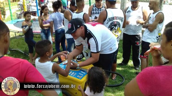 Teve distribuição de brinquedos, algodão doce, bolo, cachorro quente, pipoca, refrigerantes, brincadeiras e muito mais, para todas as crianças presentes do bairro, sem discriminação de time, raça, cor ou credo!