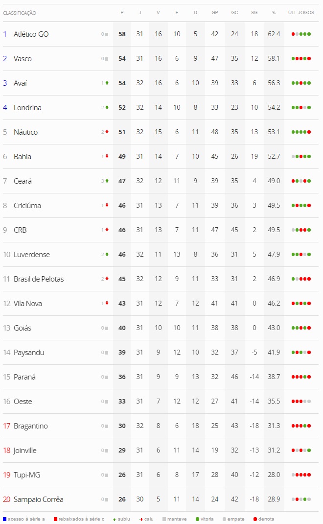 O Luverdense venceu o Náutico por 2 a 1 e impediu o time pernambucano de empatar em pontos com o Vasco na classificação do Brasileiro da Série B. Se tivesse vencido a partida, o Náutico ficaria provisoriamente na frente do Vasco devido ao melhor saldo de gols.