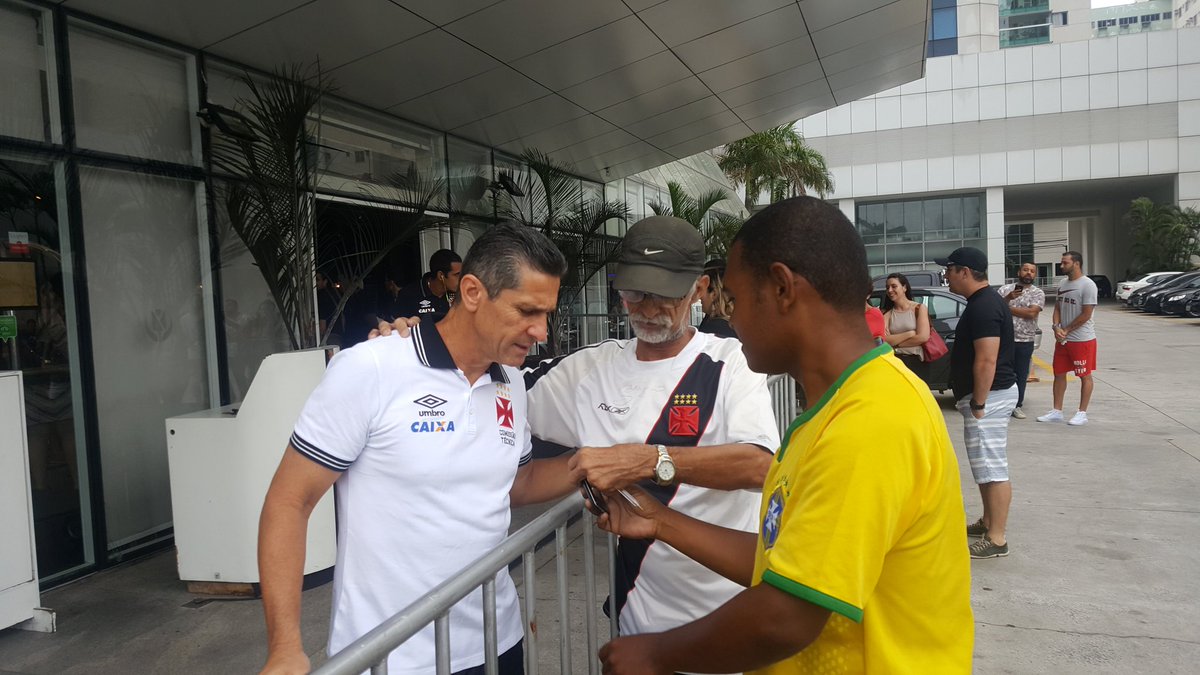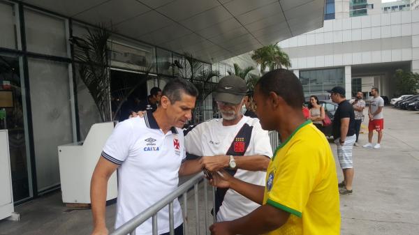 Delegação do Vasco se prepara para ir ao estádio. Jorginho atende torcedor no hotel. #gevas
