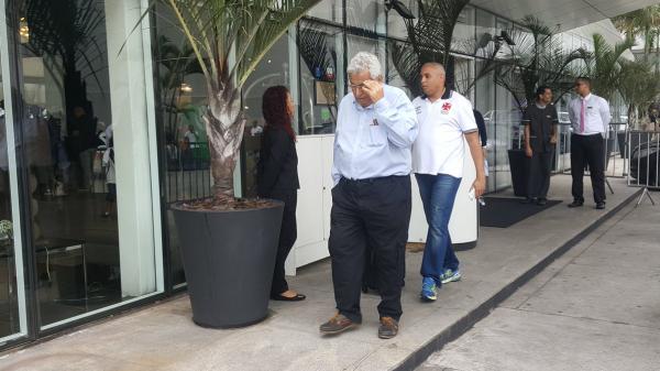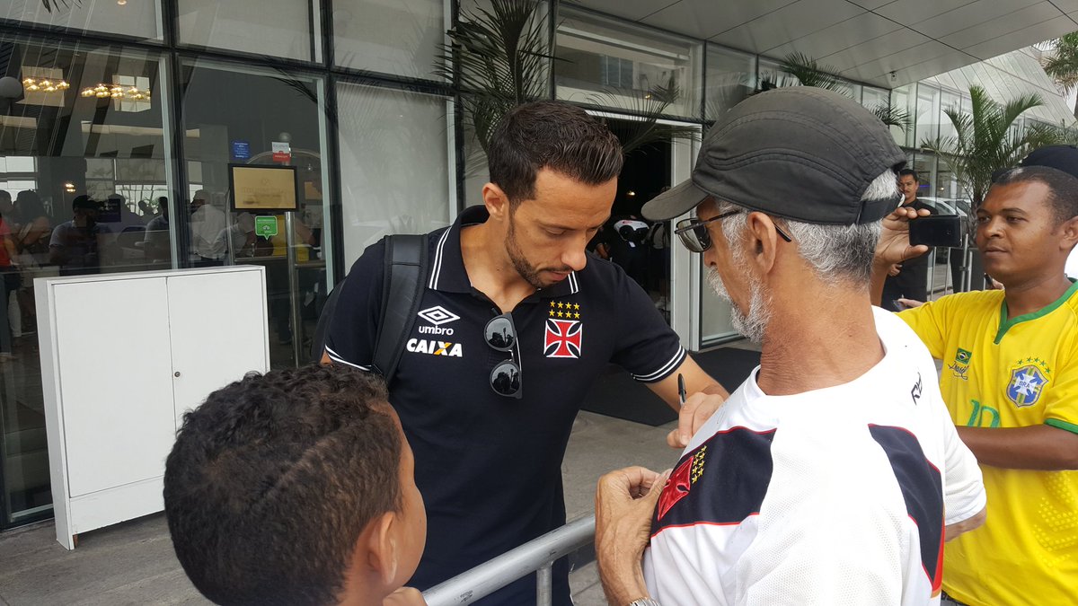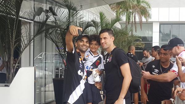 Vasco vai deixando hotel com destino ao Kléber Andrade.