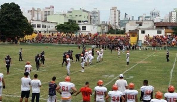 Fim do 3º quarto nas oitavas de final da Superliga Nacional de Futebol Americano: Vila Velha Tritões 26 x 22 Vasco Patriotas.