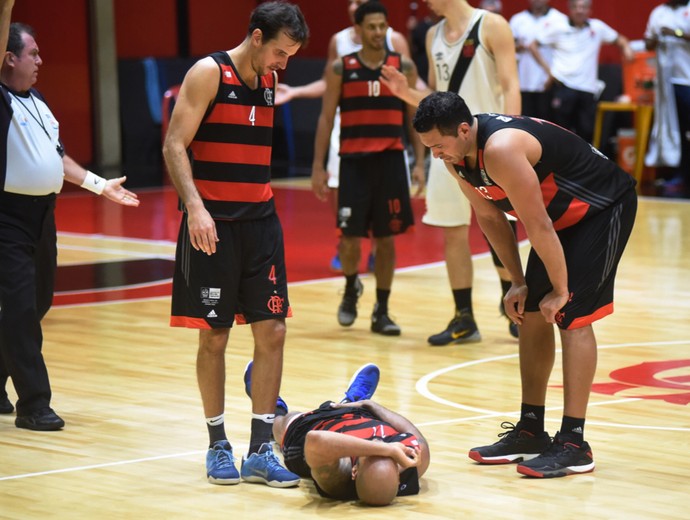 Logo na volta à quadra, o Flamengo levou um susto. Ao virar o corpo, Marquinhos escorregou sozinho, esticou as pernas e ficou caído no chão, reclamando de dores na coxa esquerda. O ala saiu de quadra, e o Vasco marcou de três, com Jackson. Marcelinho, porém, respondeu à altura logo na sequência. Marquinhos voltou logo depois, para alívio de Neto.