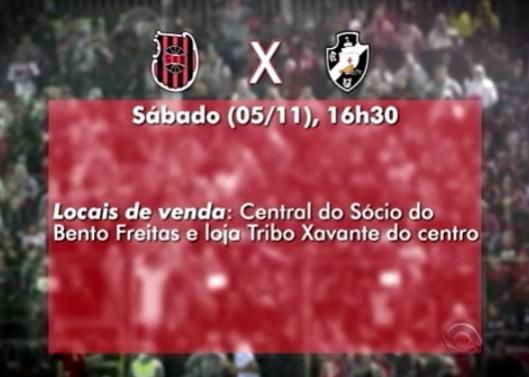 O rubro-negro que quiser assistir a mais um grande jogo do Brasil na Série B, no sábado (5), às 16h30, no estádio Bento Freitas, diante do Vasco, precisa estar atento, pois a venda dos ingressos já está aberta. Para os Sócios Xavantes, o check-in continua até o pontapé inicial da partida. Os portões no dia do jogo abrem às 14h30.