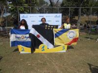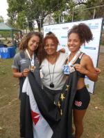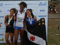 ![]() Emelly Nicole (ouro nos 1000m), a coordenadora técnica de atletismo Solange Chagas e Ester Figueira (prata nos 1000m) |