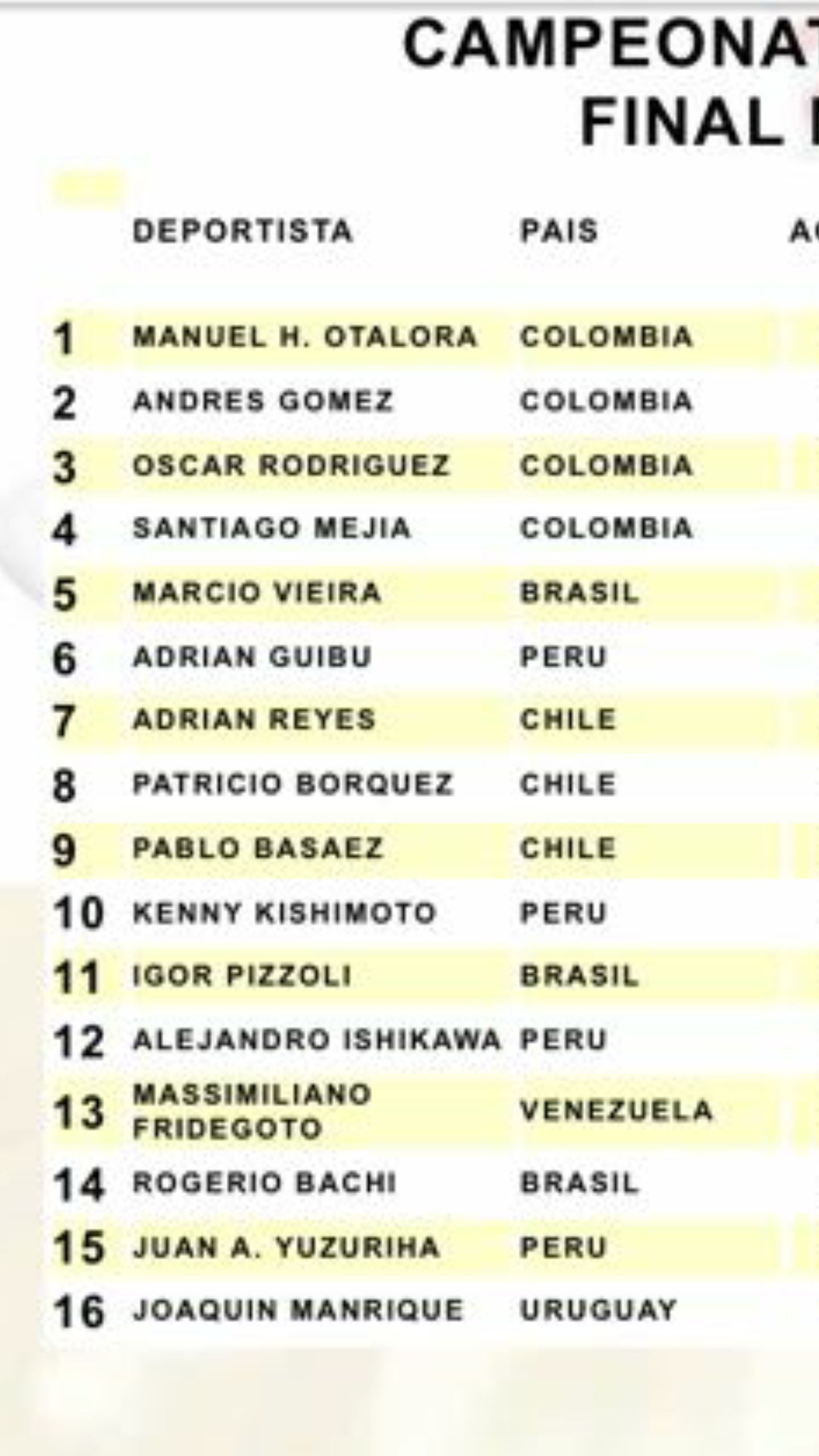 Márcio Vieira conseguiu ainda um honroso 5° lugar na final individual, atrás apenas dos colombianos.