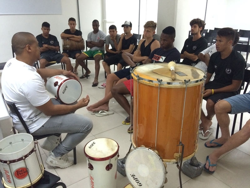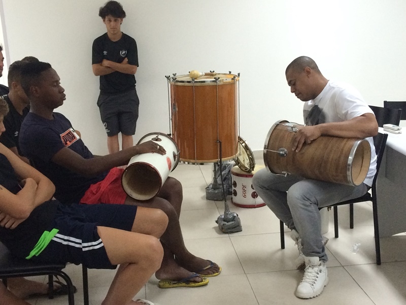 - Foi muito bom ter o Miudinho aqui com a gente. Além de ser um dos melhores percussionistas do Brasil, é muito bom de conversar e trocar experiências. Conseguiu ensinar um pouco sobre cada instrumento que trouxe, falando da história e relacionando os instrumentos com atletas de futebol, e ainda passou as principais formas de tocar cada um. Além disso, doou um Repique de Anel para o projeto que, com certeza, os meninos irão aprender, como estão aprendendo os instrumentos doados pelo Bom Gosto. Essa parte musical do projeto está muito interessante. Todos os atletas estão adorando esse contato mais prático com a música. Com certeza, iremos dar continuidade nesse tipo de atividade - destaca.