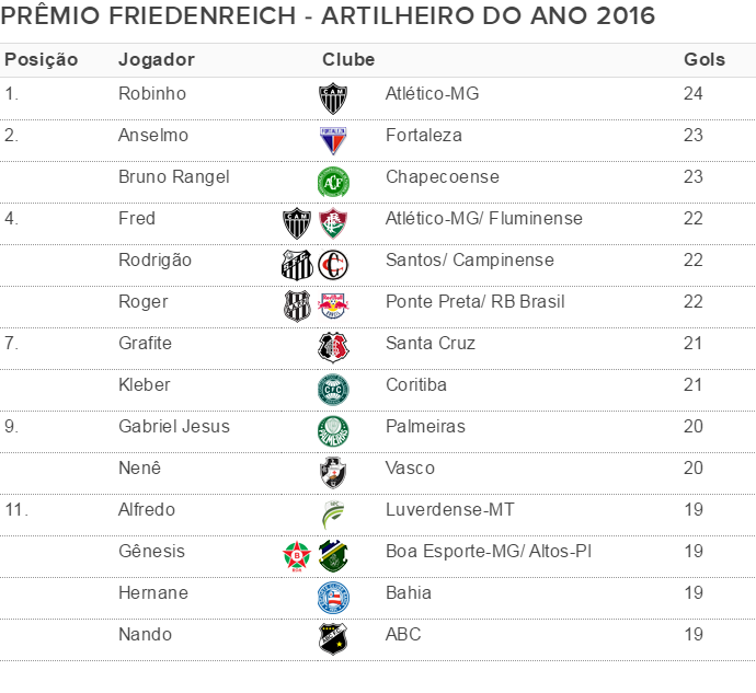 O duelo entre Atlético Mineiro e Flamengo pela 33ª rodada do Brasileiro foi um dos mais importantes do campeonato e Robinho mostrou ser decisivo ao marcar o primeiro gol do Galo, no sábado. Com esse tento, o Rei das Pedaladas marcou o seu 24º gol no ano, ultrapassou Anselmo, do Fortaleza, e assumiu a liderança isolada do Prêmio Friedenreich.