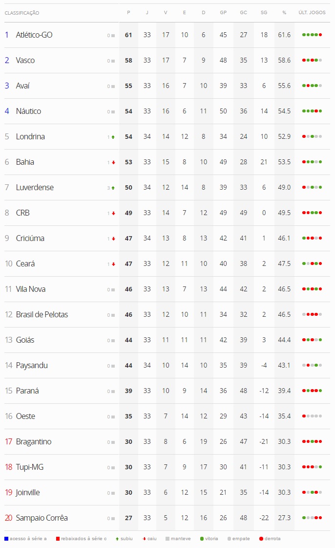 Dois jogos abriram a 34ª rodada do Brasileiro da Série B nesta 3ª-feira. O Londrina empatou com o Paysandu e perdeu a chance de entrar no G4 e ficar a apenas 2 pontos do Vasco. Já o Luverdense ganhou do Criciúma e ficou a 4 pontos do G4.