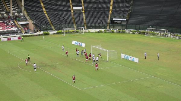 Vascaínos reclamam muito na saída de campo de que a bola bateu na mão de rubro-negro em escanteio. #gevas #gefla
