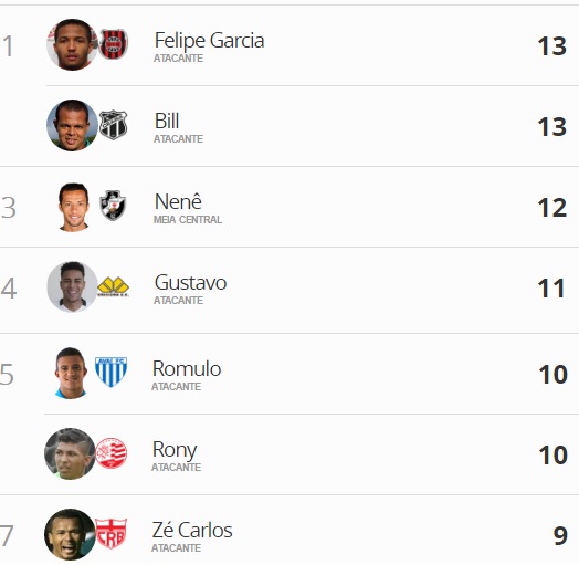 O vascaíno Nenê figura atualmente na 3ª colocação na artilharia do Brasileiro da Série B, 1 gol atrás dos líderes: