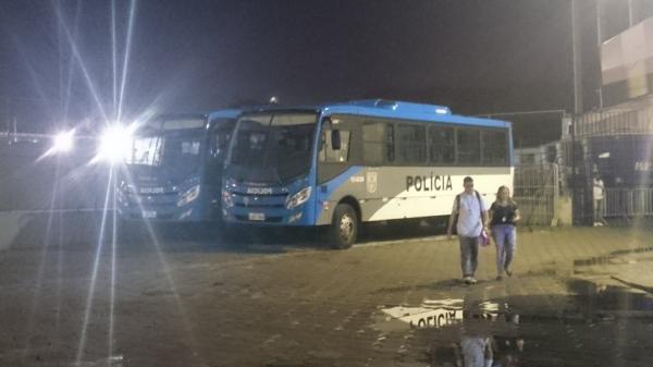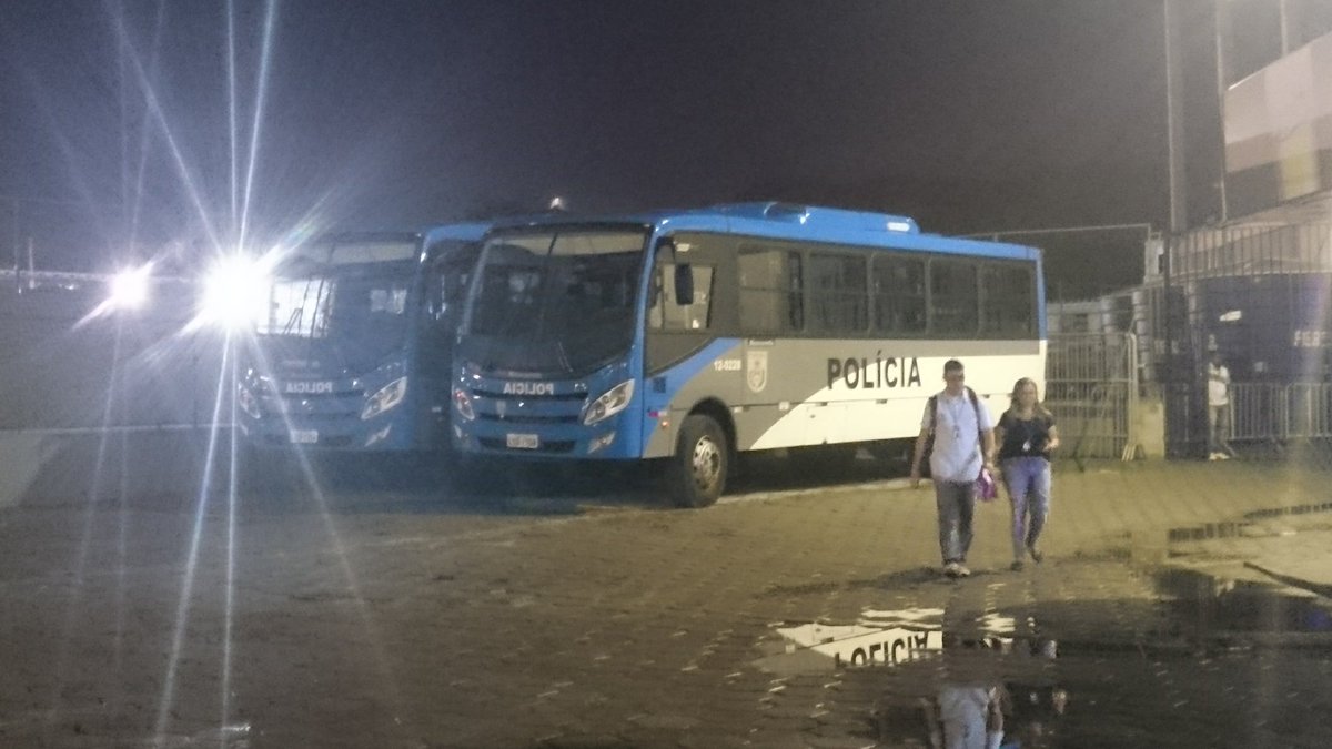 E na área interna, além de viaturas, dois ônibus. Cuidado maior para este jogo decisivo. Andando por aqui é nítido esse efetivo #lanceCOLINA