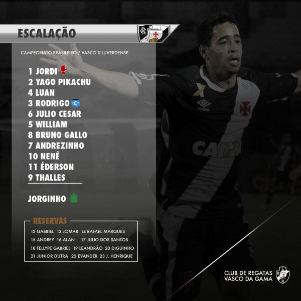 Confira escalação do Vasco; Jordi, Yago Pikachu, Bruno Gallo e Thalles são as novidades