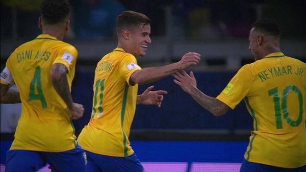 Pelas Eliminatórias da Copa do Mundo Rússia 2018, o Brasil venceu a Argentina por 3 a 0 na noite desta 5ª-feira, no Mineirão. O 1º gol brasileiro foi marcado pelo ex-vascaíno Philippe Coutinho aos 24 minutos do 1º tempo. Neymar (45'/1ºT) e Paulinho (13'/2ºT) completaram o placar. Após 11 rodadas (de um total de 18), o Brasil lidera as Eliminatórias com 24 pontos.
