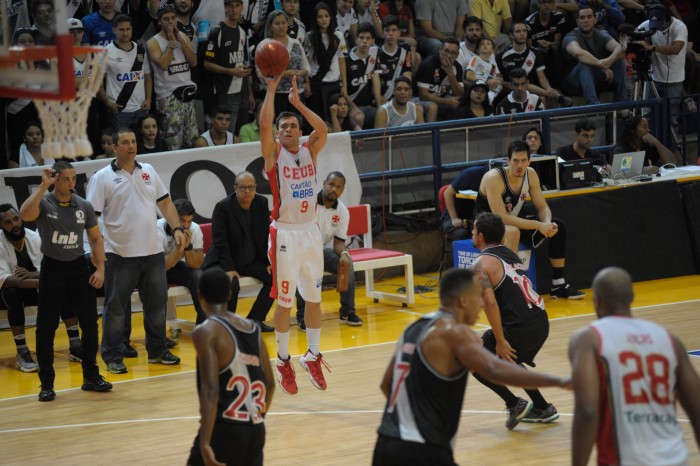 A partida começou quente no ginásio da Asceb. O Brasília abusando dos contra-ataques e dos chutes certeiros de média e longa distância de Fúlvio e Deryk, enquanto o Vasco respondia com as infiltrações de Nezinho e a técnica apurada de Murilo no garrafão. O placar seguiu equilibrado até pouco mais da metade da parcial (15 a 15), quando o Brasília passou a dominar os rebotes com Lucas Mariano (15 a 6 no período) e colocou boa sequência para fechar na frente: 27 a 16.