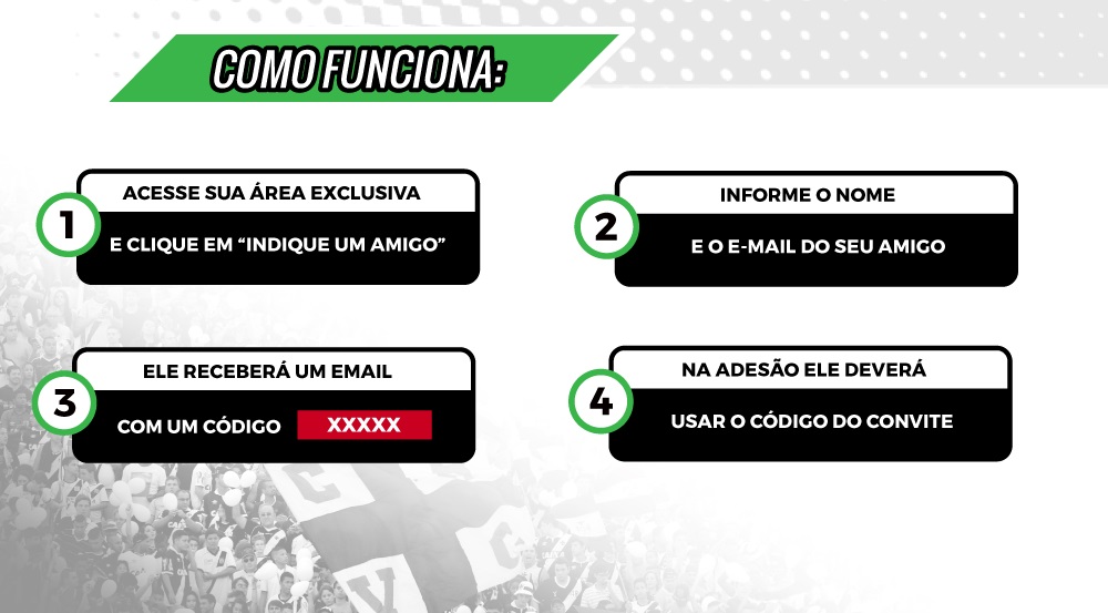 Os sócios-torcedores que desejam participar deverão acessar a área restrita do site do Gigante com o seu login e clicar em "Indique um Amigo", informando o nome e e-mail do vascaíno a ser convocado.