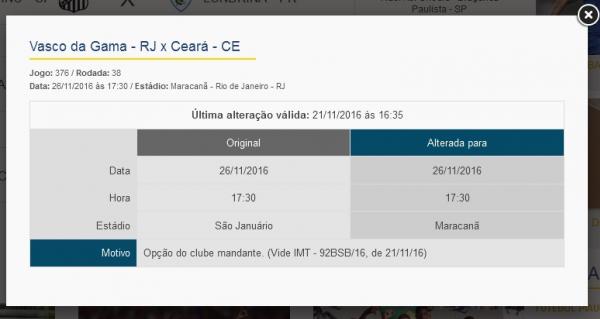 CBF autorizou a troca de estádio. Vasco x Ceará será realizado no Maracanã. #gevas