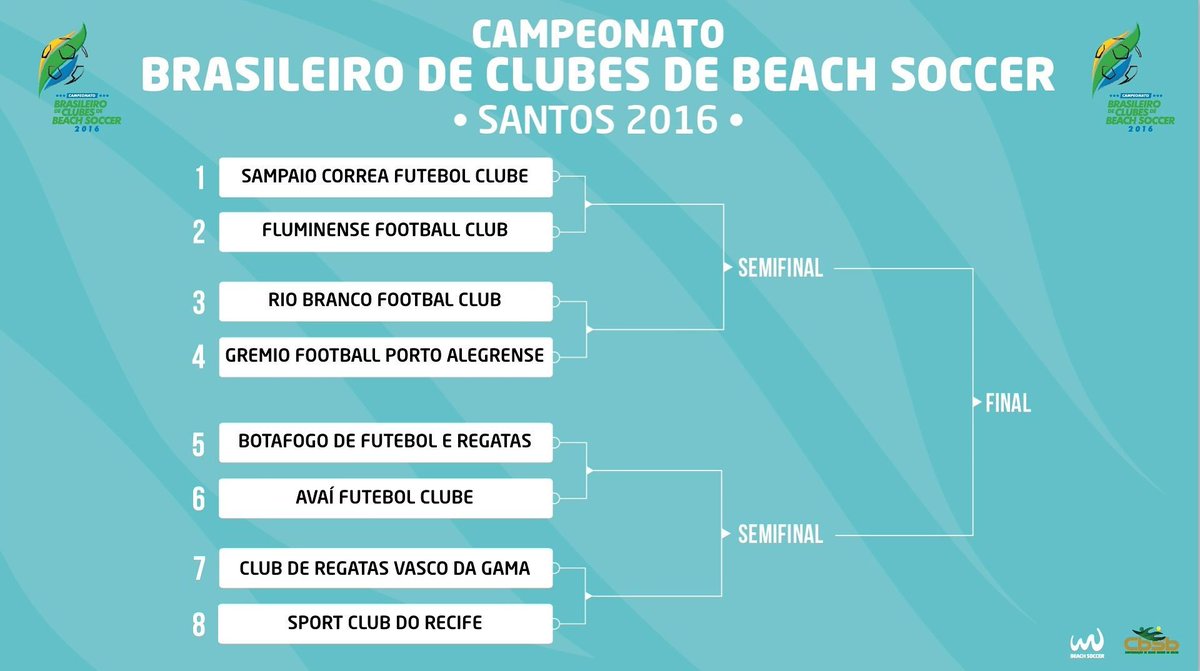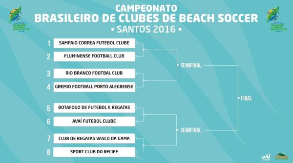 Definidos os confrontos do campeonato Brasileiro de clubes de beach soccer. Competição será disputada entre 1 e 3 de dezembro, em Santos.