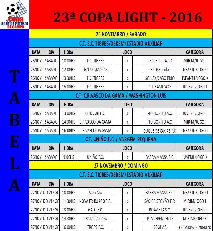 Pré-Mirim e Infantil do Vasco estarão em ação no fim de semana pela Copa Light