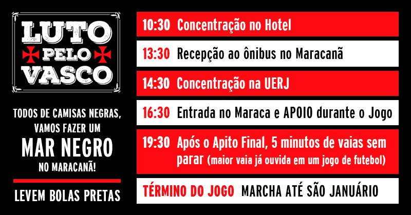 O cronograma divulgado pelo "Luto pelo Vasco". Neste, mais de 300 no evento confirmaram participação #lanceVAS