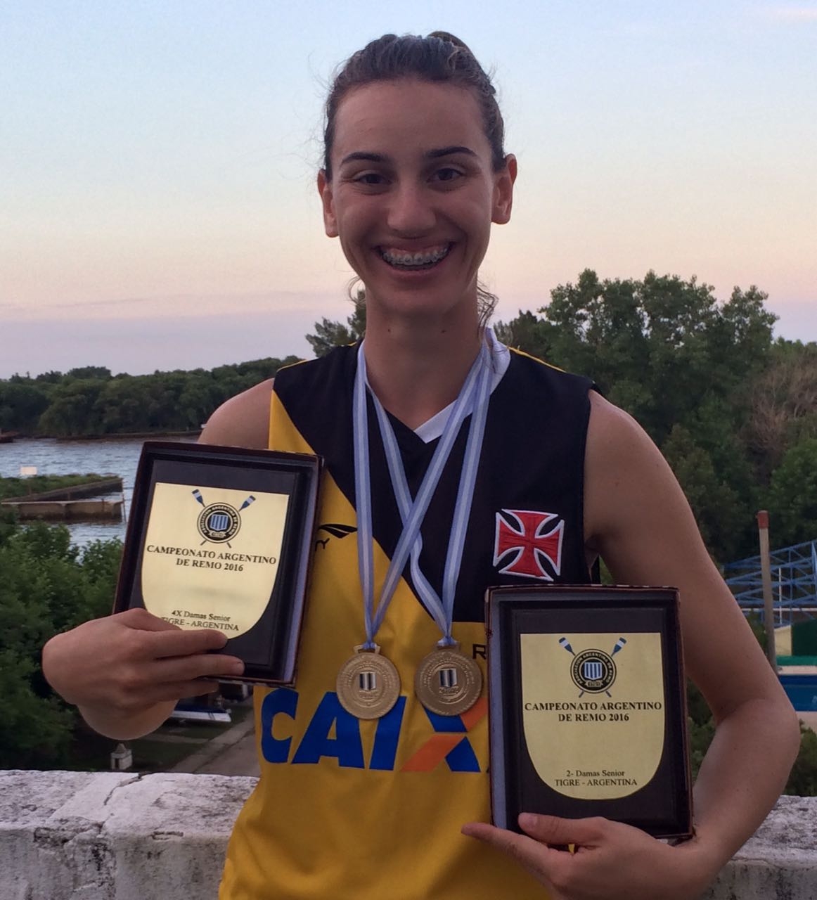 O Vasco da Gama já tem uma nova aposta para o remo , após a aposentadoria de Fabiana Beltrame. A remadora cruzmaltina Yanka Britto vem alcançando um posto cada vez mais alto dentro das regatas nacionais e internacionais, sendo considerada por muitos uma das nossas maiores atletas da categoria "pesado". Yanka, que levou o ouro no último Campeonato Brasileiro de remo, acaba de conquistar também o Campeonato Argentino da modalidade. A competição aconteceu no último final de semana na cidade de Tigre (ARG), onde a vascaína garantiu o primeiro lugar na companhia da argentina Maria Laura Abalo, num duo Brasil - Argentina.
