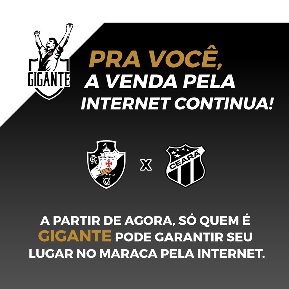 A partir de agora, a compra de ingresso pela internet para o jogo deste sábado só está disponível para quem é Gigante!