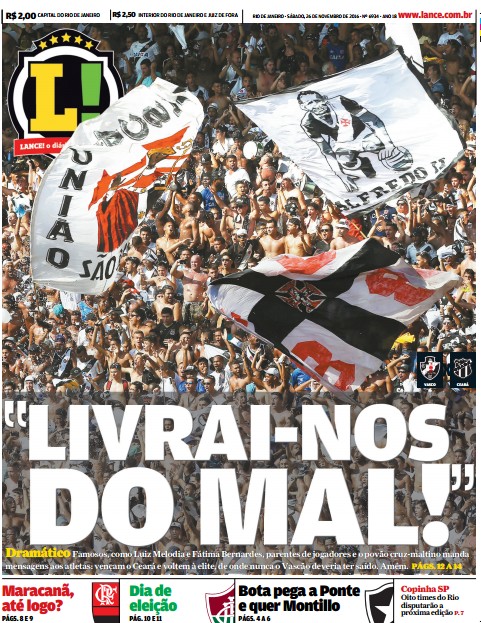 Veja como a imprensa carioca destacou o dia do jogo Vasco x Ceará decisivo