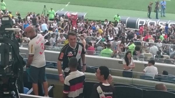 Assim que notado, o deputado foi ovacionado por parte da torcida presente no Maracanã e recebeu vários pedidos de autógrafos. Seu filho, Flávio Bolsonaro, candidato derrotado para a prefeitura do Rio, é vascaíno declarado.