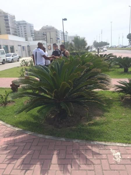 Alguns torcedores estão presentes na porta do hotel e já conversaram com os seguranças do Vasco. #lanceMARACA