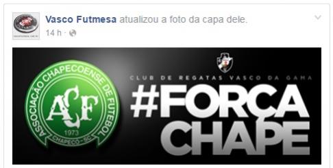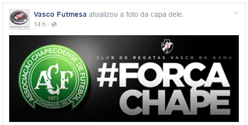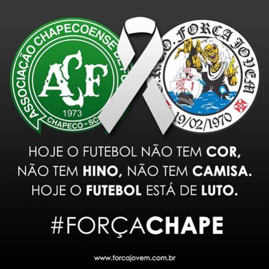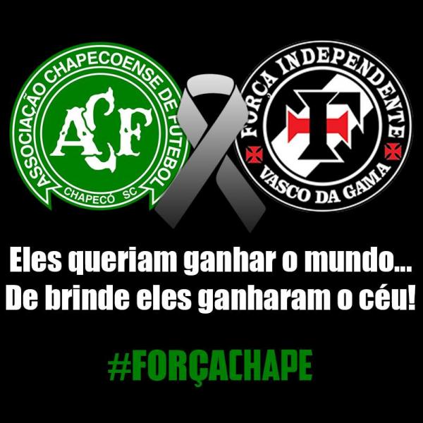 A Cruzada Vascaína, nesse momento de profunda dor para o esporte brasileiro, se solidariza com amigos e familiares dos passageiros do voo que levava a delegação da Associação Chapecoense de Futebol à cidade de Medellin, Colômbia.