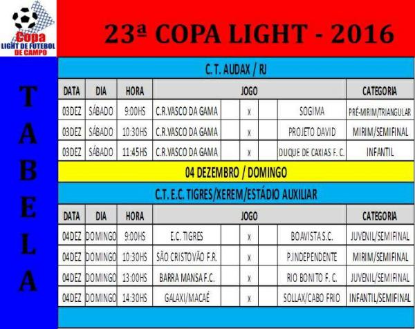 Vasco faz jogos decisivos pela Copa Light no Infantil, no Mirim e no Pré-Mirim