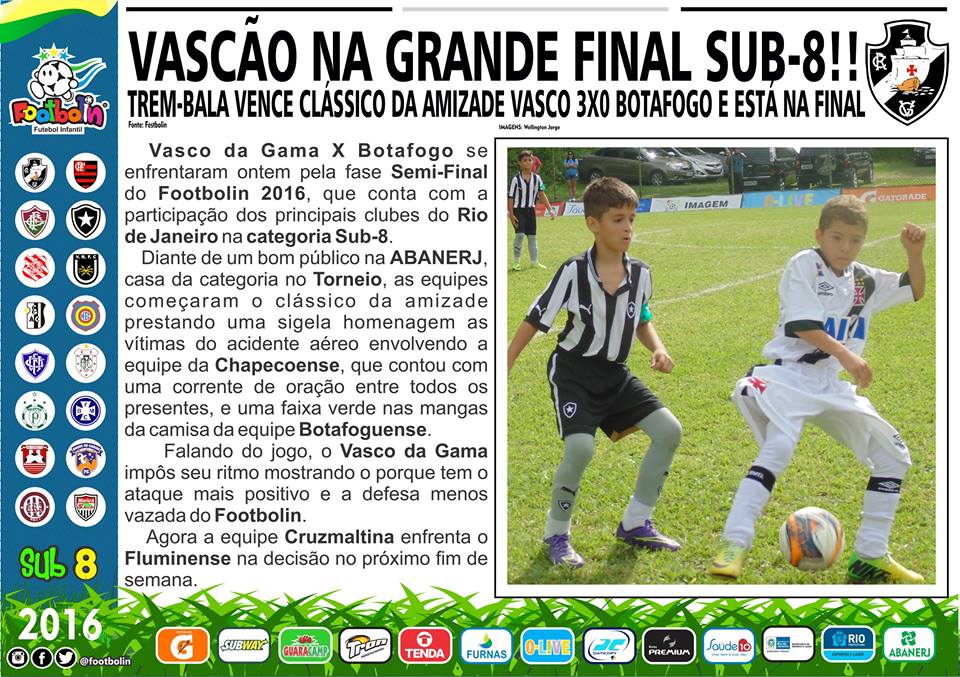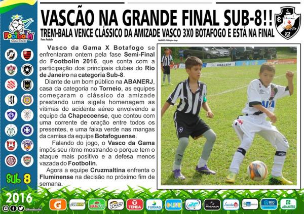Vasco vence o Botafogo e fará final do Footbolin Sub-08 contra o Fluminense
