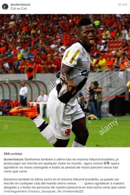O atacante colombiano Riascos parece que enfim conseguiu se desvincular do Cruzeiro, clube com o qual tinha contrato até janeiro de 2018. Nas redes sociais, ele comemorou mais uma vitória jurídica sobre a Raposa.