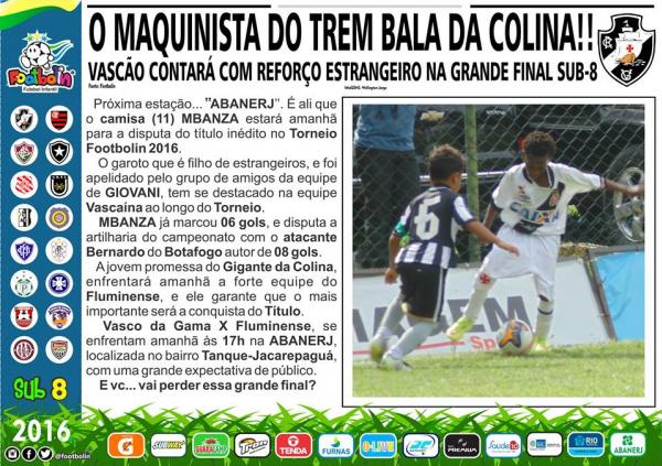 Vasco decide o Footbolin Sub-8 neste sábado às 17h contra o Fluminense