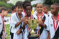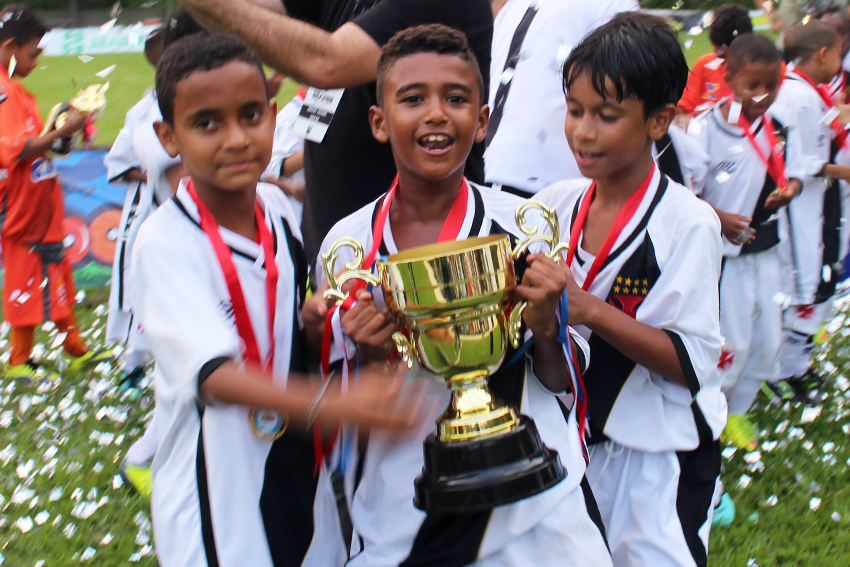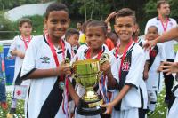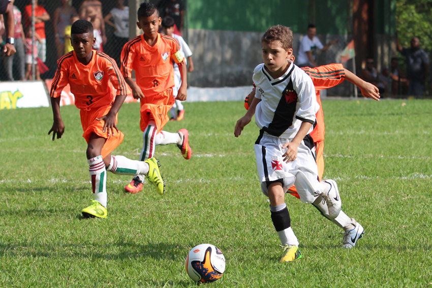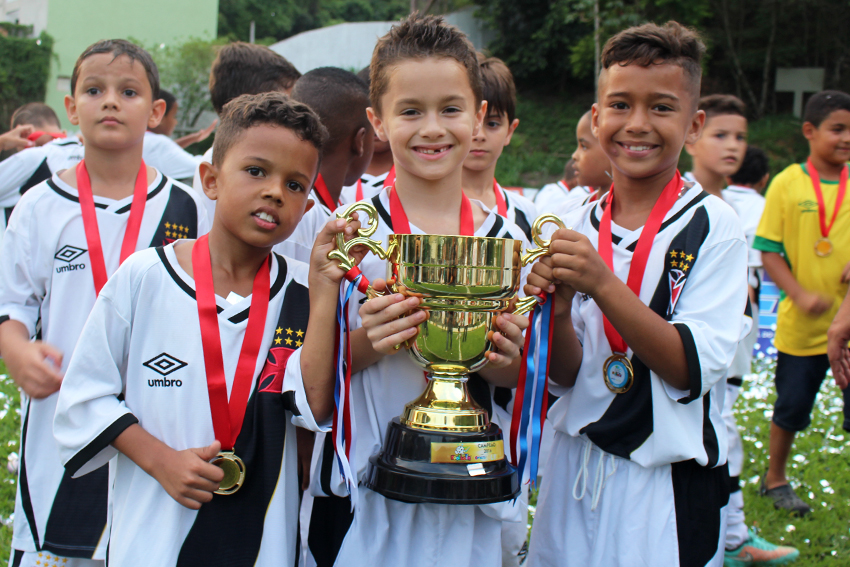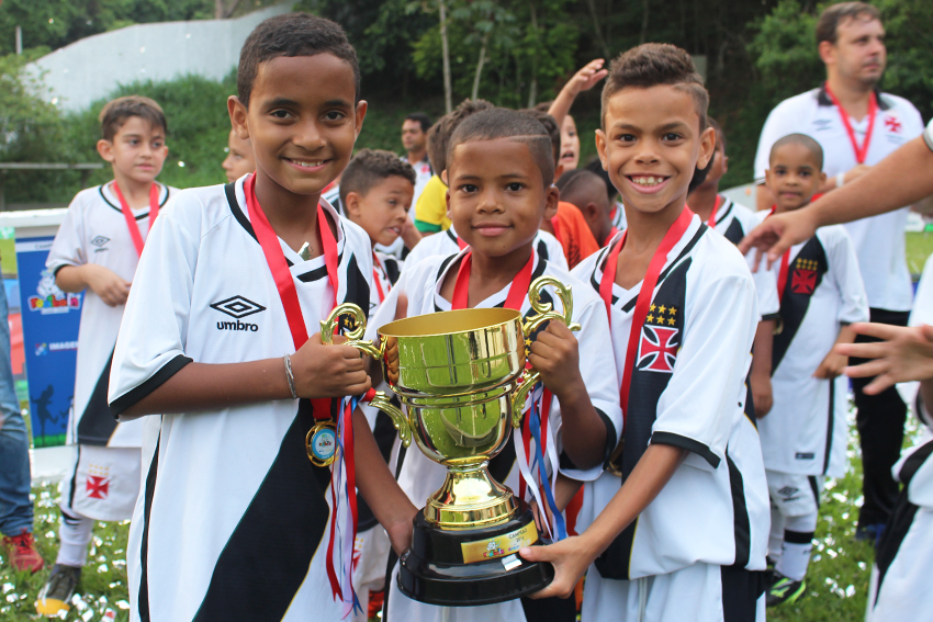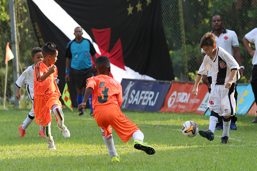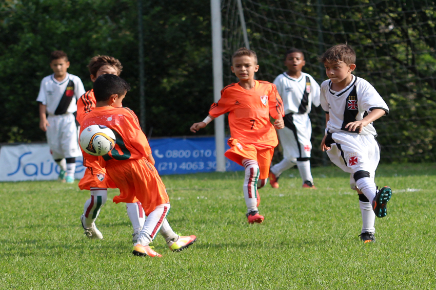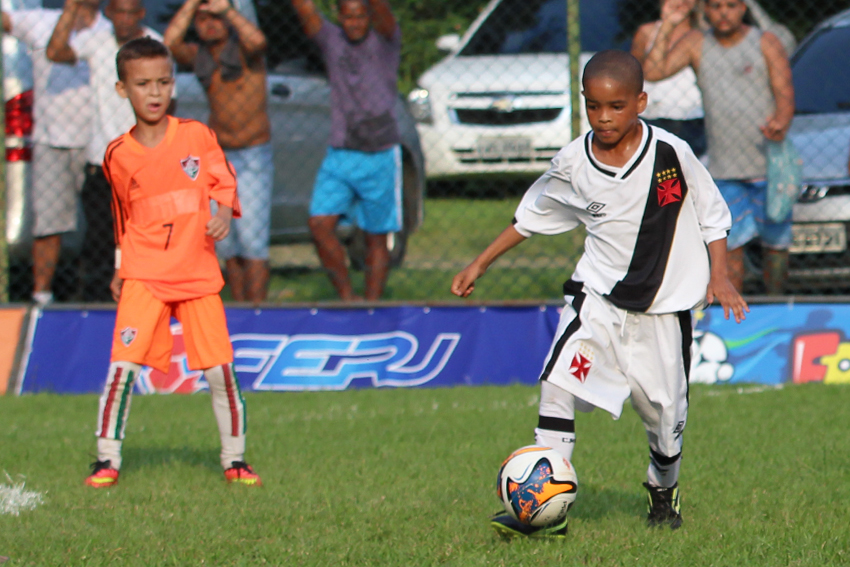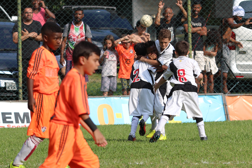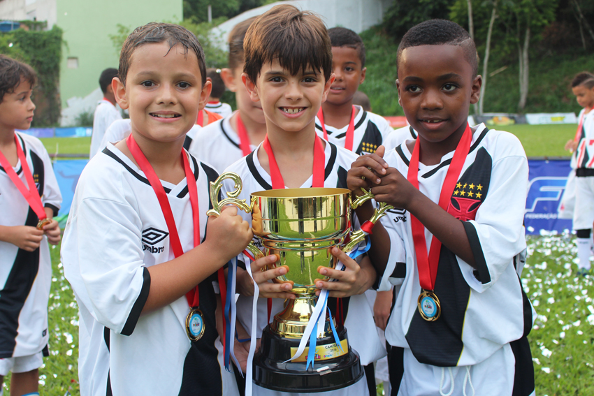 Terminou feliz o sábado (10/12) para o Vasco da Gama! Na ABERJ, no final desta tarde, o Gigante da Colina fez bonito com sua equipe sub-08 e conquistou o título do Footbolin, a principal competição do Rio de Janeiro na categoria. Na decisão do importante torneio estadual, os Meninos de São Januário tiveram o Fluminense como adversário. O clássico foi equilibrado, com placar final sendo 4 a 3 para o Almirante.