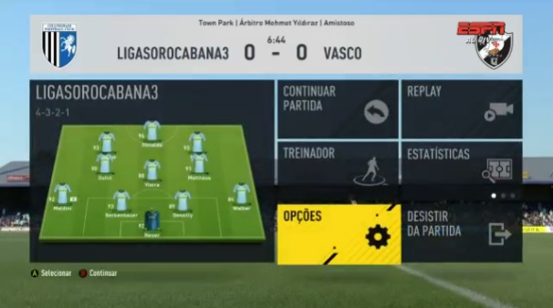 A ESPN transmite neste momento as finais da Hero League do game Fifa 2017. Na categoria Xbox, Michel Ribeiro que representa o Vasco disputa a final contra Brenner Carslon, que representa a Liga Sorocaba.