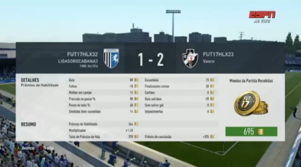 A ESPN transmitiu as finais da Hero League do game Fifa 2017. Na categoria Xbox, Michel Ribeiro que representou o Vasco venceu a final contra Brenner Carslon, que representa a Liga Sorocabana por 2 a 1.