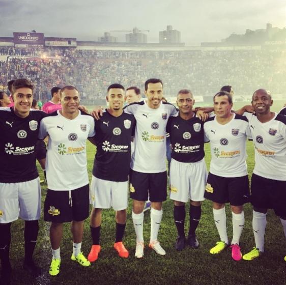 Incrível a noite ontem , muito obrigado a todos que compareceram, principalmente ao meu ídolo Romário por estar comigo nessa causa tão nobre e tão importante para as crianças da minha cidade. Obrigado ao público que lotou o estádio vcs vão fazer um Natal feliz a todas instituições #FomesódeBola Gabriel Jesus não sabe brincar 😂😂😂